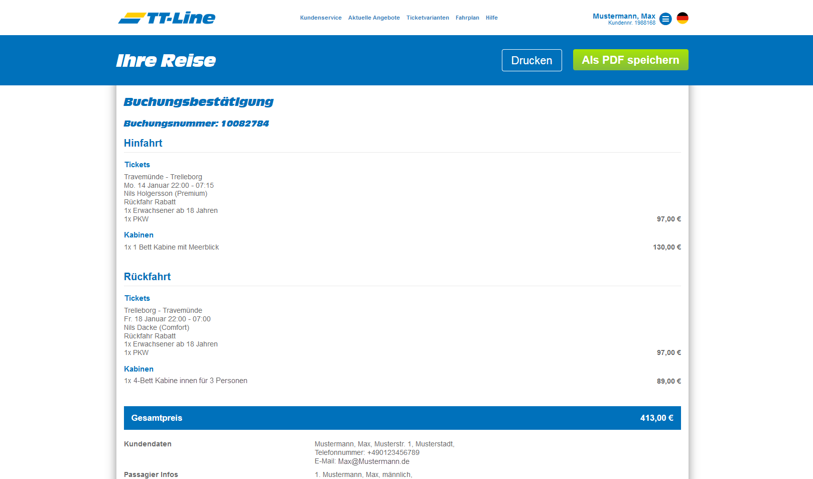 You have already registered for "My TT-Line" during the booking process or otherwise?